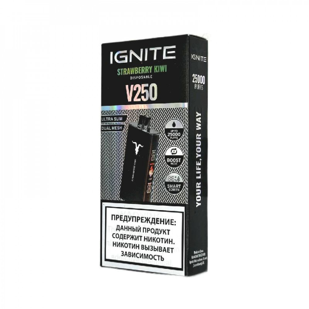 Электронная сигарета Ignite V250 Black 25000 - Strawberry Kiwi (Клубника киви) - купить в Нижнем Тагиле